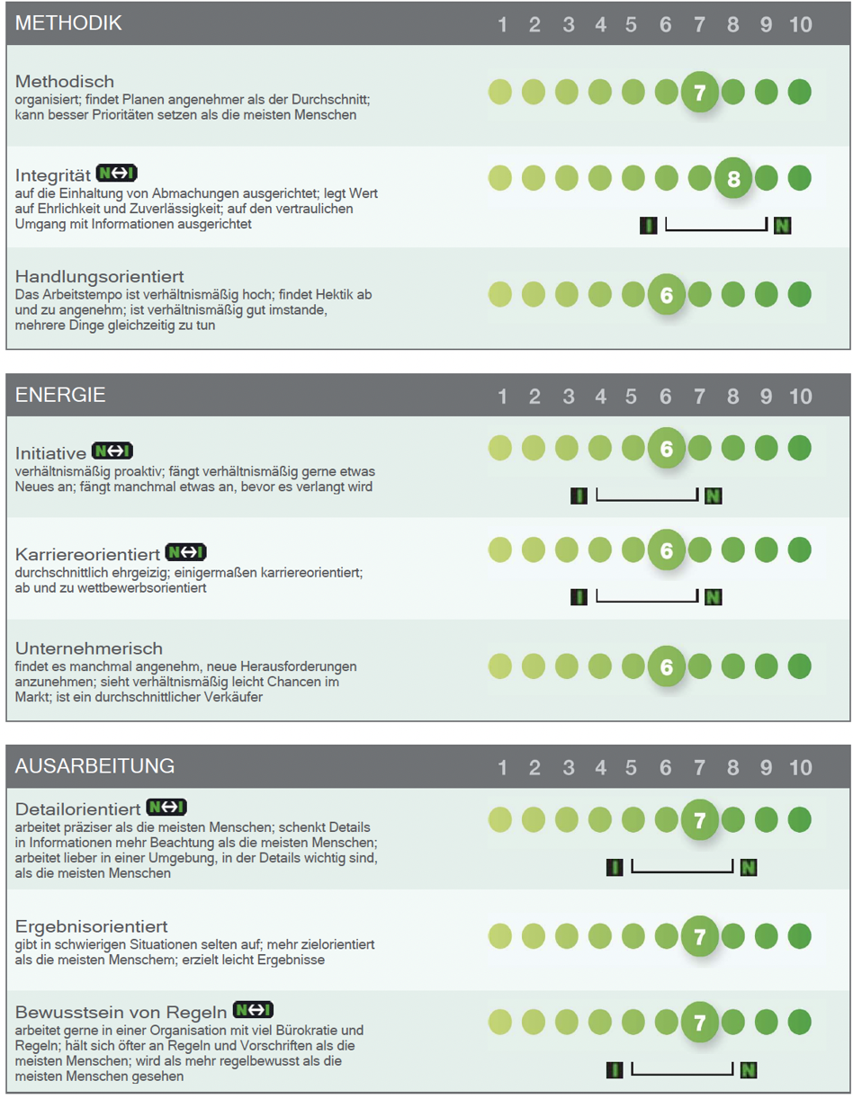 The test in German can be used for recruitment, selection, coaching, talent development, and team workshops. It gives clear and practical insights into personality and competencies that can be directly applied in the workplace.